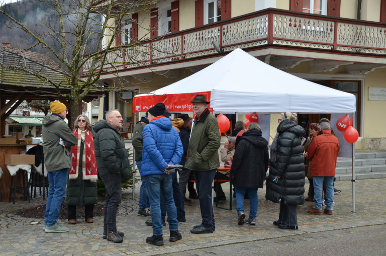 Natürlich wollen Ruhpoldingerinnen und Ruhpoldinger ihre Kandidatinnen und Kandidaten für den Gemeinderat kennenlernen. Meistens sind damit aber auch gleich Fragen oder Hinweise verbunden, die die Gemeinde betreffen. Bei der aktuellen Schnee- und Wetterlage ist es offenbar gefährlich, zum Waldkinderkarten, zum Betreuten Wohnen am Vinzentinum oder auf sonstigen öffentlichen Wanderwegen zu gehen, weil nicht überall ausreichend gestreut ist. Im Zusammenhang mit Fragen zu den Wanderwegen ganz allgemein ging es Bernhard Forstner insbesondere um den Steig nach Eisenärzt, der schon sehr lange gesperrt ist.
